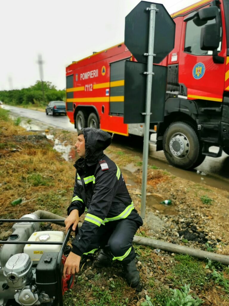 Pompierii au intervenit și în municipiul Giurgiu, pe Fundătura Rozelor pentru evacuarea apei de pe stradă.