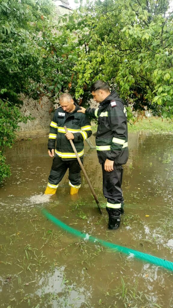 În urma averselor torențiale ce au căzut duminică după-amiază, pompierii au fost solicitați să intervină pentru evacuarea apei din cinci gospodării, astfel: