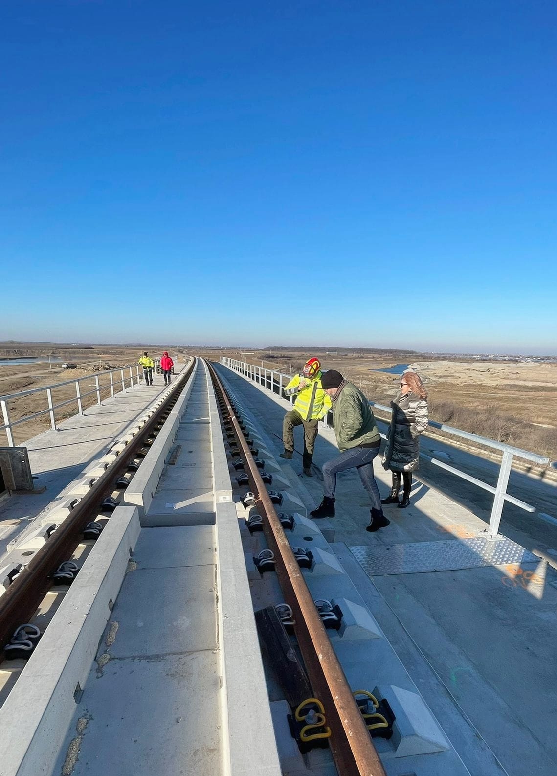 Podul şi calea ferată vor fi gata în următoarele luni, astfel încât, pe linia ferată care va fi complet funcţională în luna mai, distanţa Bucureşti-Giurgiu va putea fi străbătută într-o oră.