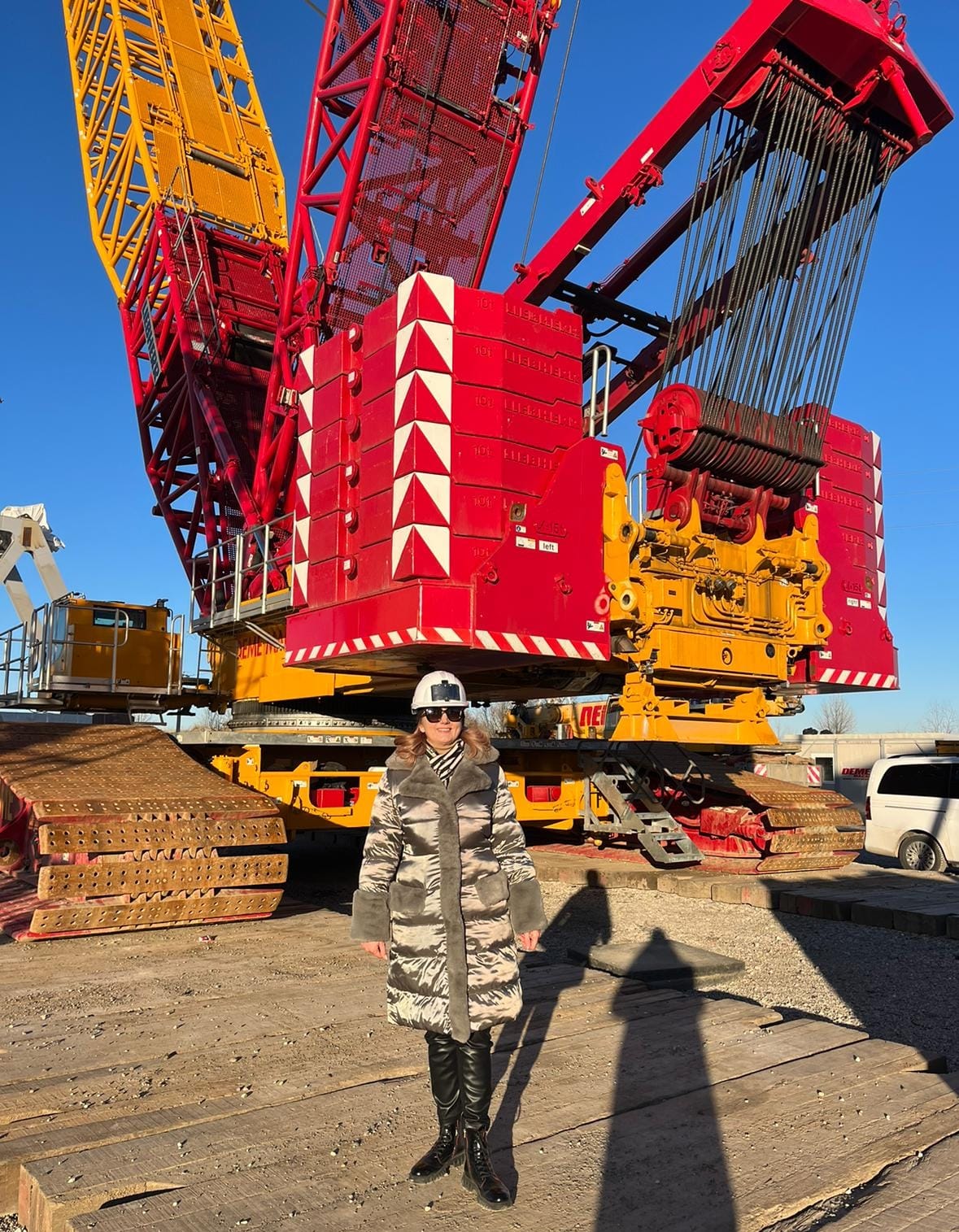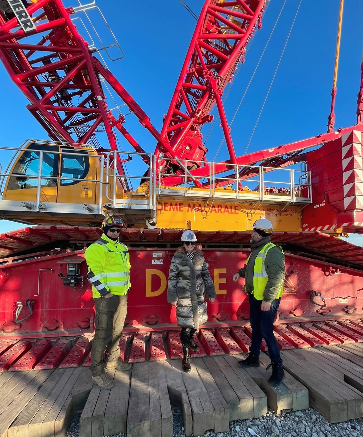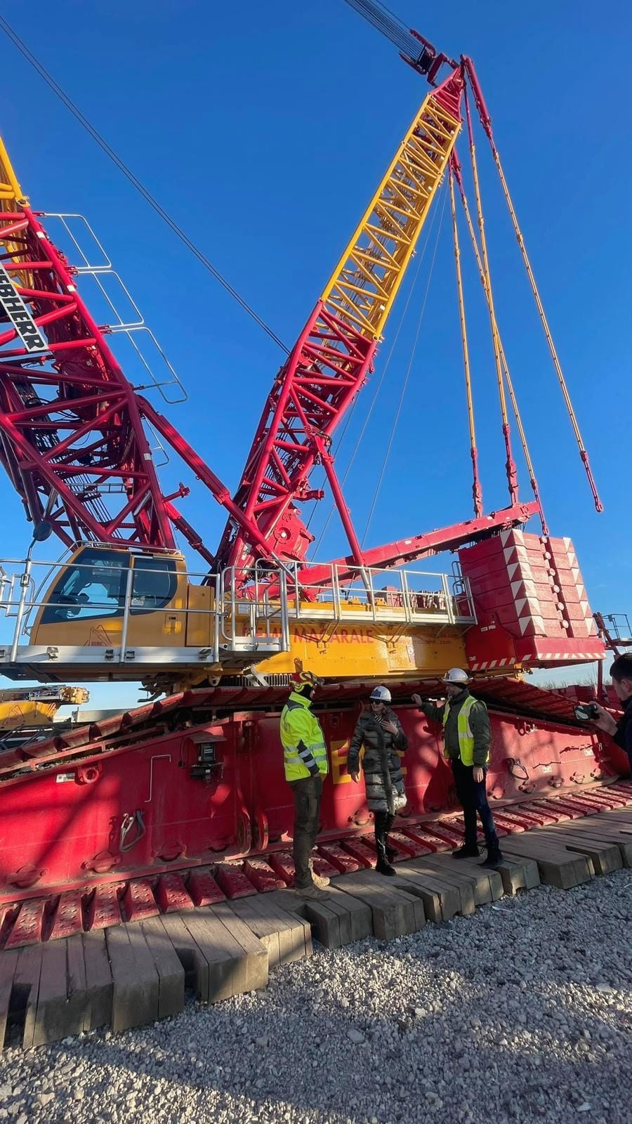 150 de oameni lucrau ieri de zor pe un vânt şi un soare cu dinţi de crăpau pietrele, darămite obrajii neobişnuiţi cu vremea aspră ai vizitatorilor care se uitau cu uimire la a treia cea mai mare macara din Europa, 750 de tone, un colos pentru a cărui montare a fost nevoie de o săptămână de lucru.